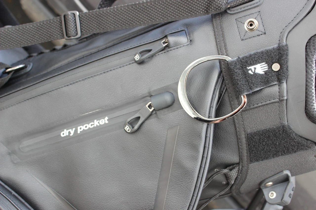 Das Bag bietet zahlreiche Taschen für Ihre Ausrüstung, einschließlich einer geräumigen Bekleidungstasche, einer Kühltasche für Getränke, mehrerer Zubehörtaschen und einer wasserdichten Wertsachentasche. Dadurch haben Sie genügend Platz für Bälle, Tees, Handschuhe, Regenschirm und persönliche Gegenstände.