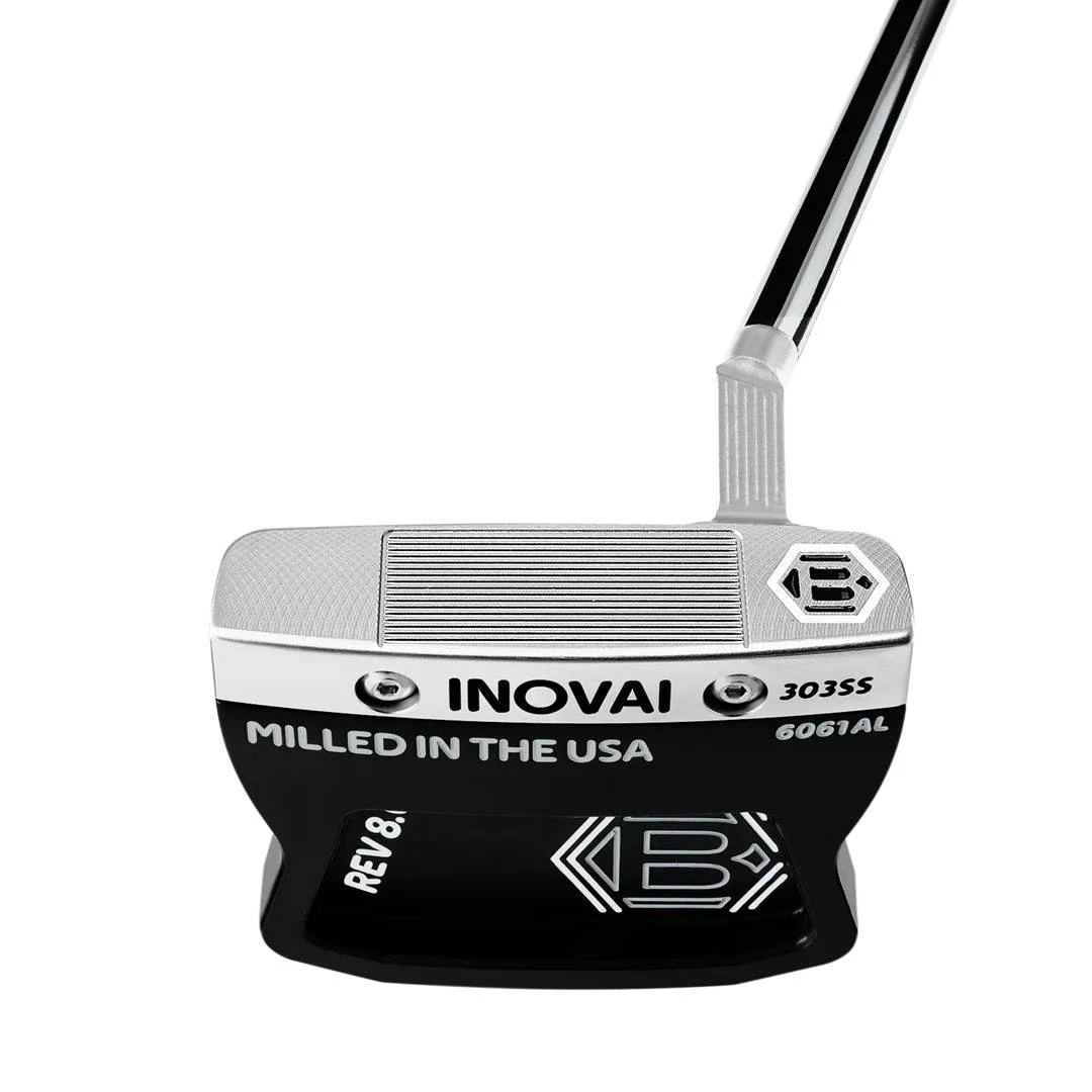 The all-new INOVAI 8.0 was designed and engineered by Sam Bettinardi to instill maximum confidence and forgiveness while putting. The 8.0 was created with a 303 Stainless Steel front piece for a solid feel at impact, a Military Grade 6061 Aluminum body that was designed with defined wings that offer more stability and higher M.O.I numbers. The INOVAI 8.0 Slant has quarter toe hang, and is the perfect option for players with a slight-to-moderate arc in their putting stroke. Precisely milled to 358 grams and finished in a gorgeous two-tone Stealth Black and Diamond Blast appearance, the all-new 8.0 offers players the perfect visual cues and optics for a clean appearance and enhanced alignment while framing the ball perfectly at address.