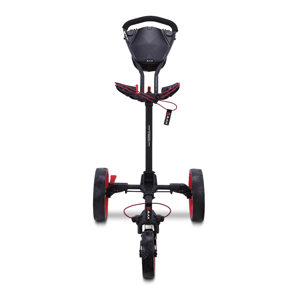 Der Big Max Blade Trio Trolley ist in elegantem Schwarz-Rot erhältlich, was ihm ein modernes und ansprechendes Aussehen verleiht. Mit diesem Trolley ziehen Sie auf dem Golfplatz definitiv alle Blicke auf sich.