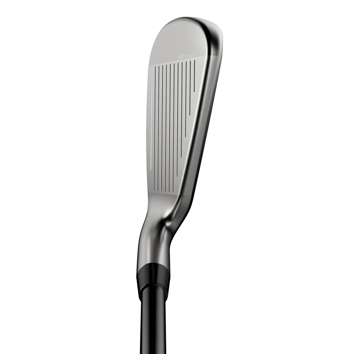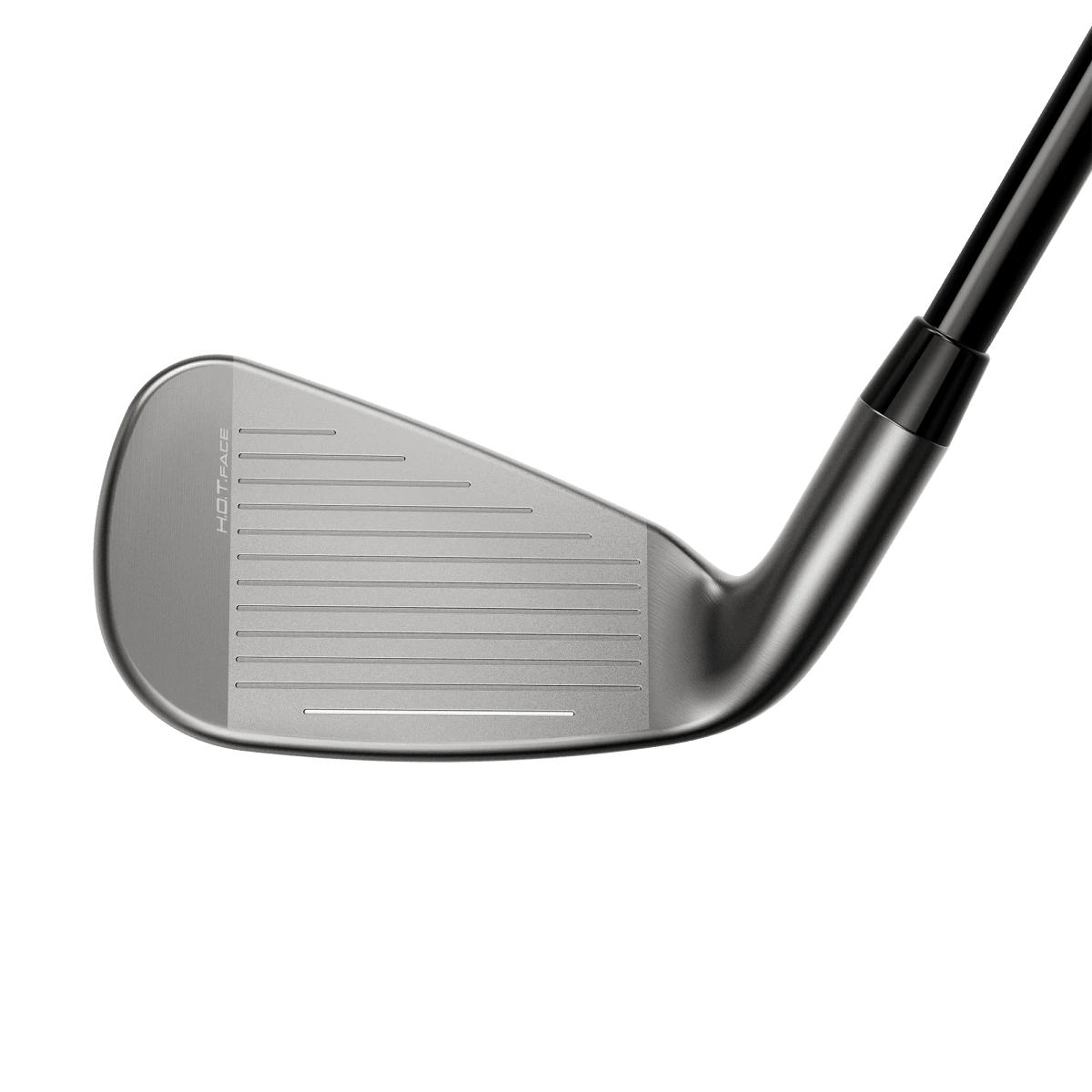 Genau wie die Driver und Fairway-Hölzer in der Aerojet-Familie haben auch die Eisen Schläger eine Konstruktion mit PWR-Bridge. Bei den Eisen ist dieses Gewicht im hinteren Teil des Schlägers verankert, damit sich Schlagfläche und Sohle für maximale Länge und ein weiches Gefühl flexen können. Das Gewicht ist tief und nah an der Schlagfläche platziert, um eine hohe Flugbahn und hohe Ballgeschwindigkeit zu ermöglichen. Die Schlagfläche ist geschmiedet und wird PWR-Shell genannt. Das Besondere an der PWR-Shell ist, dass die Schlagfläche nicht komplett flach ist, sondern L-förmig und bis in die Sohle reicht. Dies bedeutet, dass ein größerer Teil der Schlagfläche flexen kann, was zu gleichmäßigeren Längen führt, selbst bei dünnen Treffern. Die Rückseite der Schlagfläche ist mit Hilfe von KI gestaltet, was zu einer aufwändigen Unregelmäßigkeit führt, damit Länge und Spin an ganzen 15 Punkten auf der Schlagfläche optimiert werden. Cobra nennt dies H.O.T Face Technology.