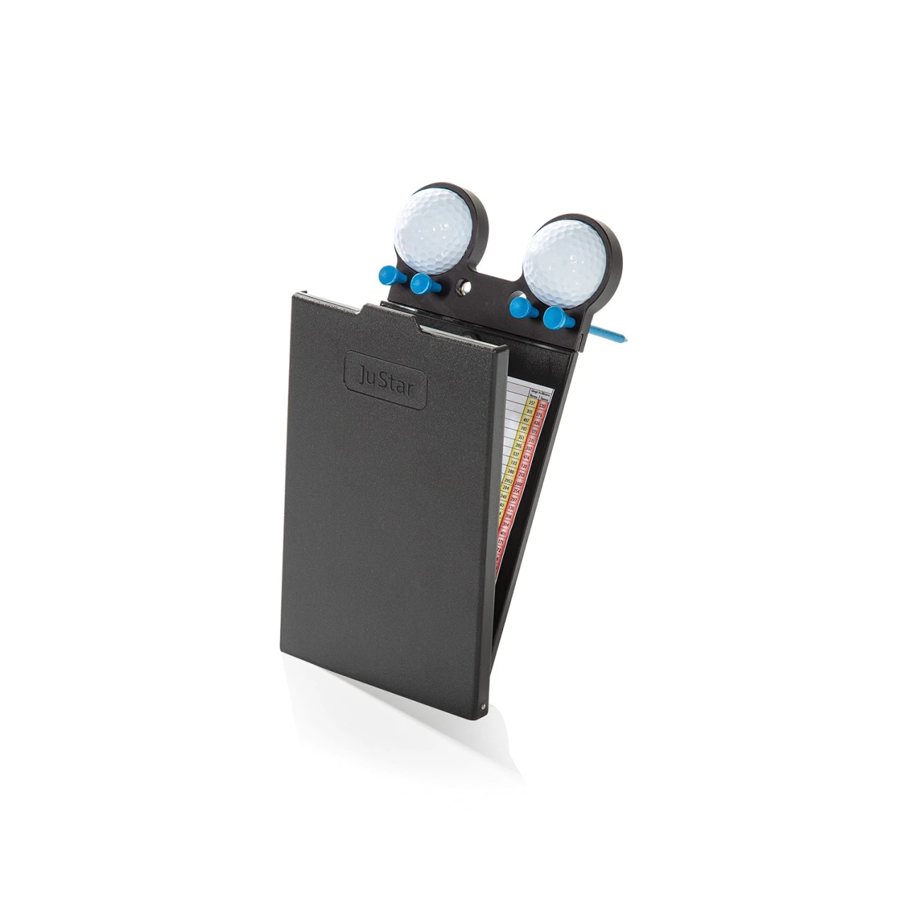 Der Justar Scorekartenhalter ist ein praktisches Zubehör für Golftrolleys, das Ihre Scorekarte und Stift sicher und griffbereit aufbewahrt.