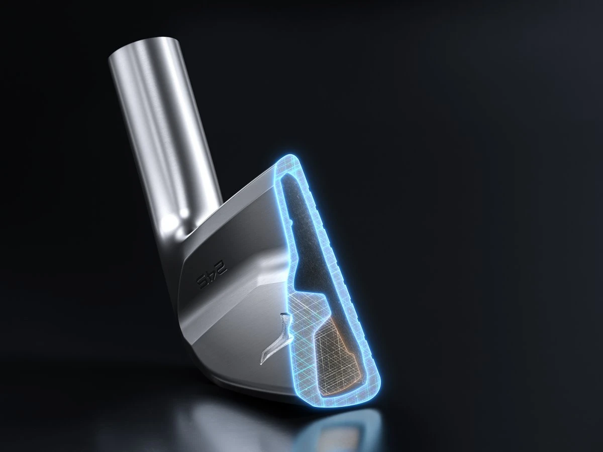 Der Pro 245-Eisen ist ein äußerst komplexes Modell. Vom 2. bis zum 8. Eisen werden Gesicht und Hals aus federndem Grain Flow Forged 4135 Chromoly-Stahl hergestellt. Innen hilft ein aufgehängtes 46g Wolframgewicht (beim 8. Eisen waren es 30g) beim Start (außer beim 8. Eisen), während zur Schaffung des hohlen Körpers ein Abschnitt aus 431-Edelstahl auf der Rückseite laser-geschweißt wird.