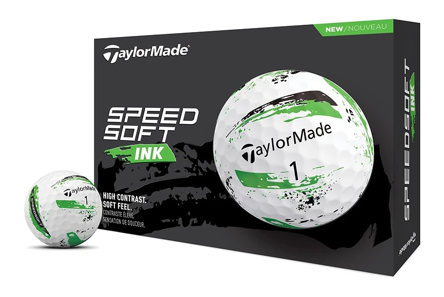 SpeedSoft also features a new paint-splatter visual technology called SpeedSoft Ink. It was created with high contrast and high visibility in mind, while also bringing the multi-axis print formula used in TP5/x Pix to a more-affordable price point. Offered in four colorways (Green, Blue, Red and Pink), SpeedSoft Ink is here to bring a little personality and style to the golf course for those who dare to break convention.