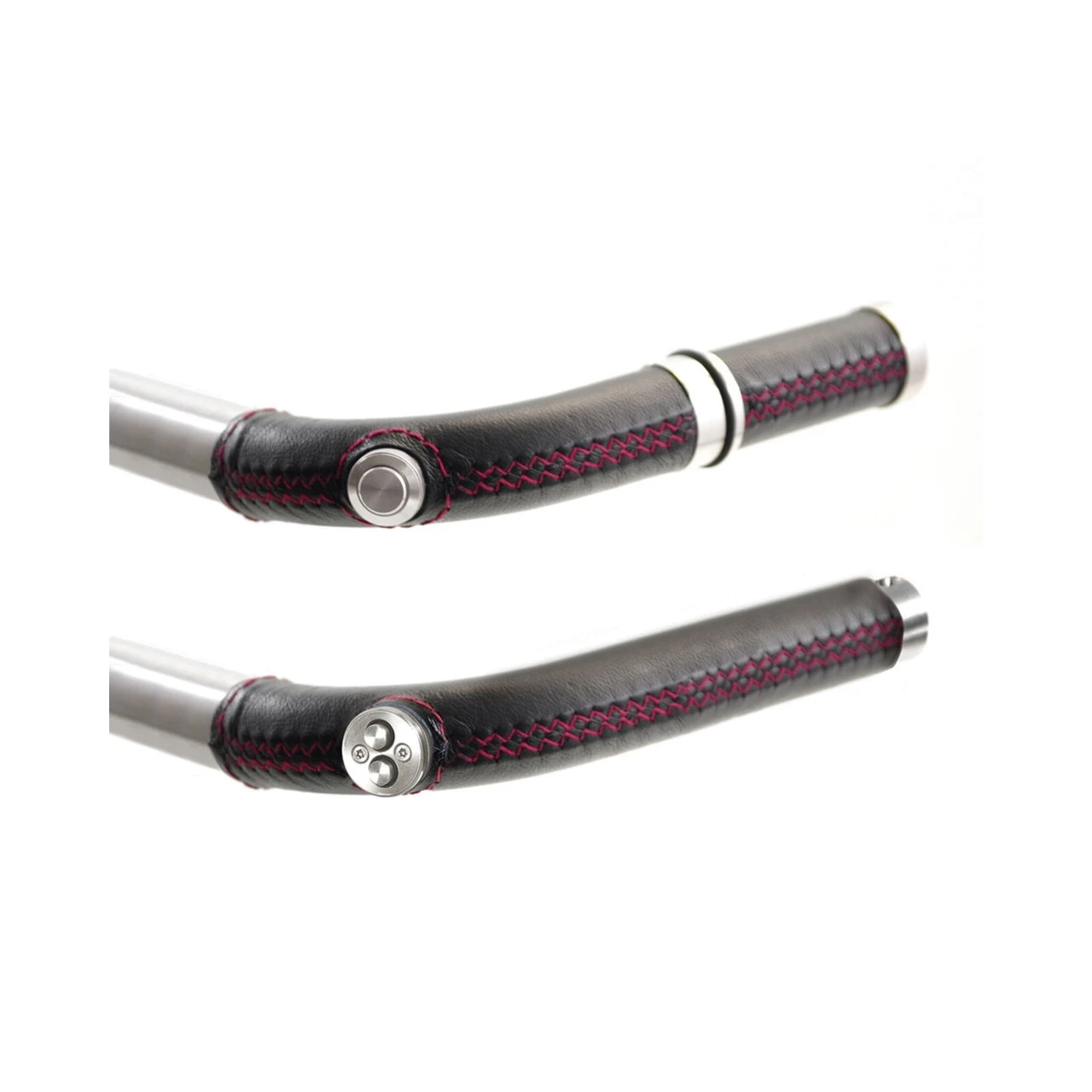 - Feinstufig höhenverstellbare Deichsel mit Ledergriff, wahlweise für Links- und Rechtshänder